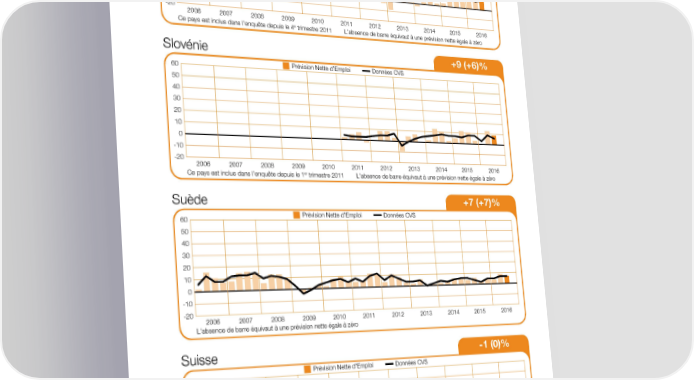 Slovaquie +13 (+10)% 60 PrPrévision Nette d’Emploiévision Nette d’Emploi Données CVSDonnées CVS 50 40 30 20 10 0 -10 -20 2006 2007 2008 2009 2010 2011 2012 2013 2014 2015 2016 e Ce pays est inclus dans l'enquête depuis le 4 trimestre 2011 L'absence de barre équivaut à une prévision nette égale à zéro Slovénie +9 (+6)% 60 PrPrévision Nette d’Emploiévision Nette d’Emploi Données CVSDonnées CVS 50 40 30 20 10 0 -10 -20 2006 2007 2008 2009 2010 2011 2012 2013 2014 2015 2016 er Ce pays est inclus dans l'enquête depuis le 1 trimestre 2011 L'absence de barre équivaut à une prévision nette égale à zéro Suède +7 (+7)% 60 PrPrévision Nette d’Emploiévision Nette d’Emploi Données CVSDonnées CVS 50 40 30 20 10 0 -10 -20 2006 2007 2008 2009 2010 2011 2012 2013 2014 2015 2016 L'absence de barre équivaut à une prévision nette égale à zéro Suisse -1 (0)% 60 PrPrévision Nette d’Emploiévision Nette d’Emploi Données CVSDonnées CVS 50 40 30 20 10 0 -10 -20 2006 2007 2008 2009 2010 2011 2012 2013 2014 2015 2016 L'absence de barre équivaut à une prévision nette égale à zéro Baromètre Manpower des perspectives d’emploi France 27