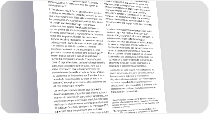 Baromètre Manpower des perspectives d'emploi T3 2016 Page 14 Page 16
